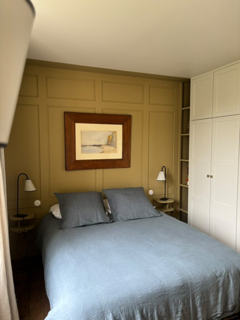 Chaque chambre a été pensée individuellement, avec des palettes de couleurs adaptées à la fois à la personnalité de la pièce et aux faïences de sa salle d’eau. Cette approche sur-mesure permet d’accueillir les habitants dans un cadre chaleureux et harmonieux.